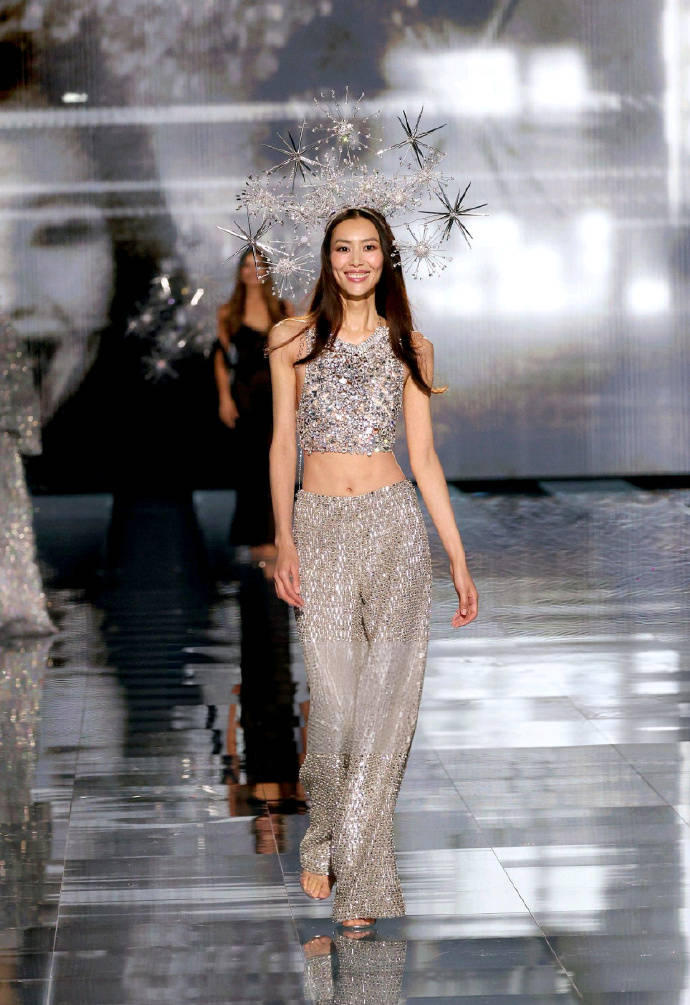 在后台采访中,刘雯坦言这条“冰雪女神”造型的银白色镶钻裤装巨重无比,全因密布手工缝制的水晶与金属装饰。为了撑起这份“重量级时尚”,她秀前特意吃了热燕麦粥,还计划午餐补足体力,笑称“得吃饱才能撑起裤子”。更拼的是,她当天其实是带感冒登台,却丝毫没在镜头前露怯。