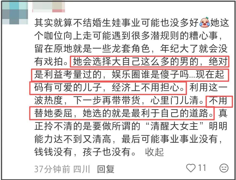 说到底,想要婚姻关系平等,就不能既要又要,19岁的年龄差放在那,整场婚姻注定钱和情绪价值无法兼得。
