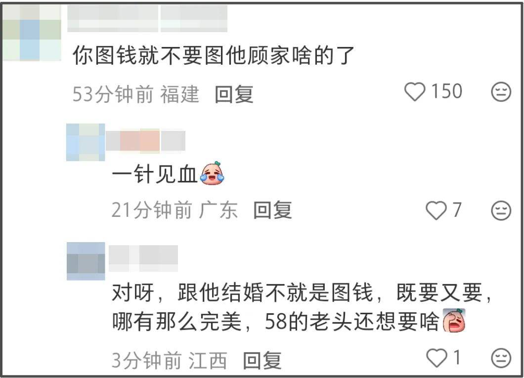 网友有时候讲起话来那叫一个不客气,邓莎老公比邓莎大19年,都是奔60岁的人了,女明星嫁都快能当爸的富商,图啥?图他年纪大,图他不洗澡?