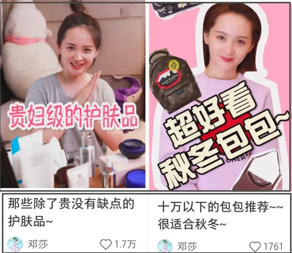 邓莎老公路行是上市公司董事,名下企业市值2亿,邓莎结婚生子之后减少工作,住在北京带花园的大别墅,拍个晒包视频主题都是“十万以下的小包”。
