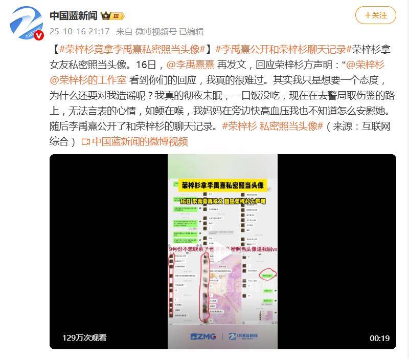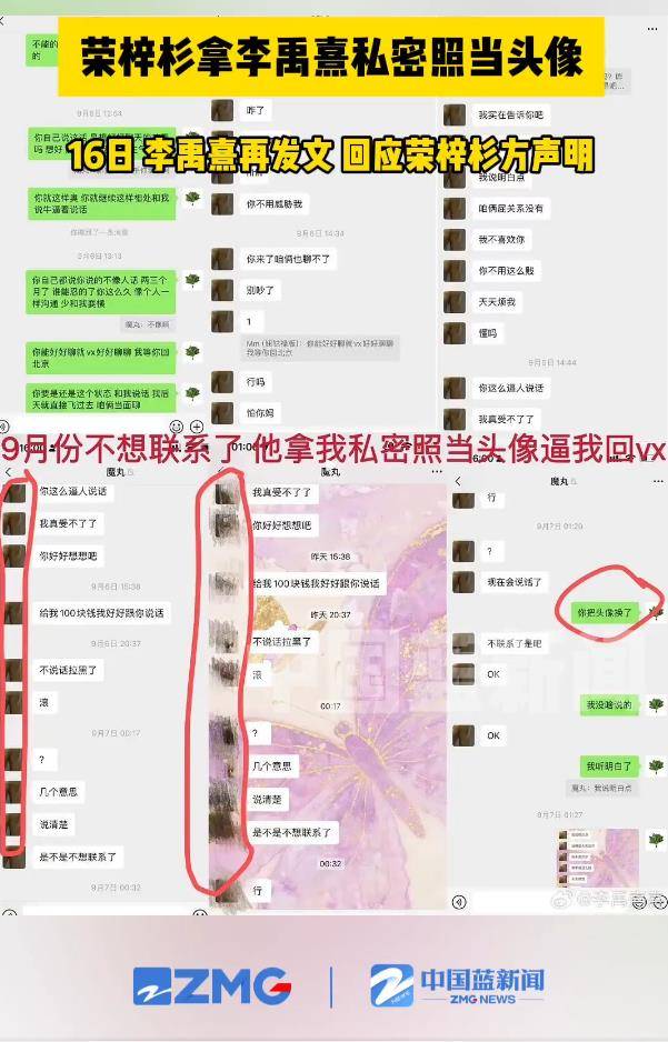 据李禹熹公开披露,她与荣梓杉于2024年8月确立恋爱关系,但甜蜜转瞬即逝。在同年9月的一次冷战期间,荣梓杉竟将她的私密照片设为微信头像,以此逼迫她回复消息。曝光的聊天记录中,李禹熹直言“他拿我私密照当头像逼我回vx”,而荣梓杉则在争执中要求对方“把头像换了”——这一被网友称为“头像胁迫”的操作,瞬间点燃了公众对情感操控行为的强烈反感。