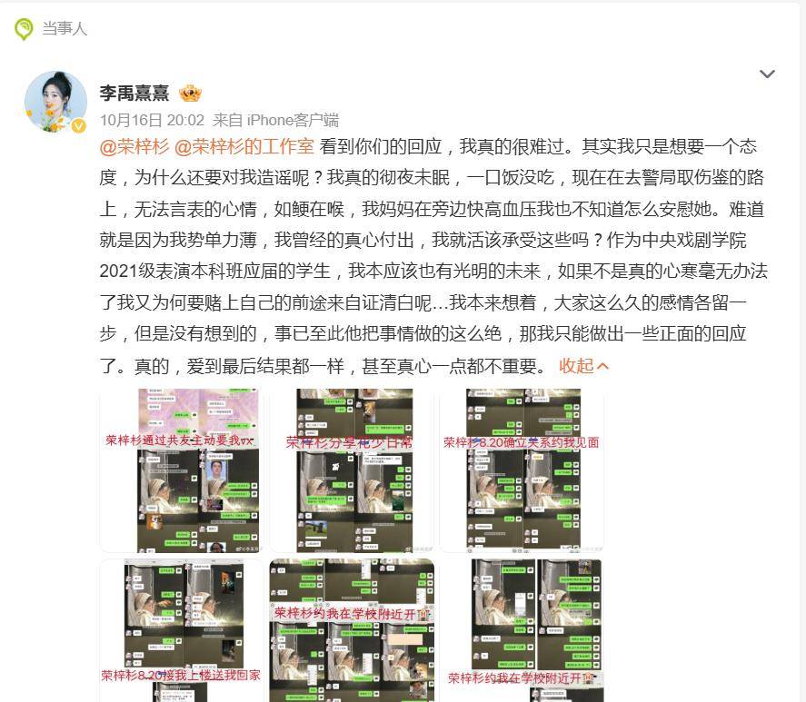 一桩涉及私密照、情感胁迫与经济纠纷的明星私事,在2025年10月突然成为全网焦点。中央戏剧学院学生李禹熹于10月16日发长文,实名控诉同龄演员荣梓杉在恋爱期间多项争议行为,引