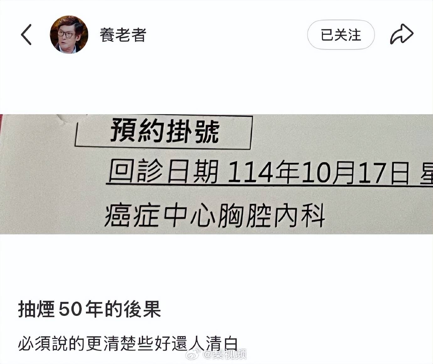 当“郭碧婷爸爸患癌”悄然登上热搜,背后是一场关于生命、亲情与隐私的复杂叙事。10月16日,郭碧婷父亲在社交媒体亲自发文,坦言“本来不想让人知道我有癌”,并晒出“癌症中心胸腔内科”预约挂号截图,首度公开自己罹患小细胞肺癌并伴有心脏衰竭的病情。这位低调的老人用一句“抽烟50年的后果”冷静道出病因,更以“必须说的更清楚些好还人清白”的豁达,直面近日因向太提及他患重病而被部分媒体渲染成“病危”的风波。