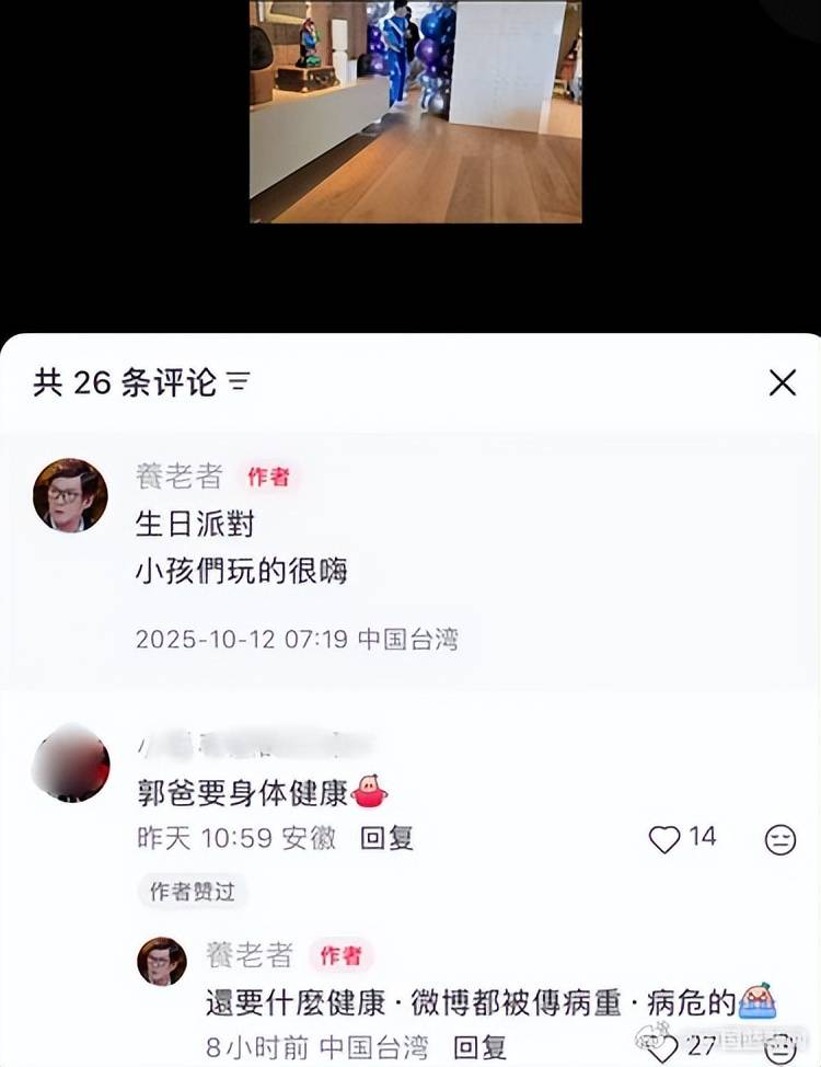 这场疾病的公开,始于一场被放化的家庭关切。近日向太在提及亲家病情时,被部分媒体解读为“时日无多”,引发舆论关注。对此,郭父在评论区理性澄清:“相信向太会说可能时日无多也是我女儿和她说的。”他客观分析病情:“小细胞肺癌和心脏衰竭,任谁都会想可能时日无多了”,但随即展现乐观姿态:“我很积极治疗,也很放开心情…现在医学发达,我现在身体都在恢复中,所以相信再活个几年没问题的。”10月14日,他曾以幽默方式辟谣“请大家来吊唁”的不实传言,强调病情公布“与向太无关”,展现了面对生死威胁时的惊人从容。