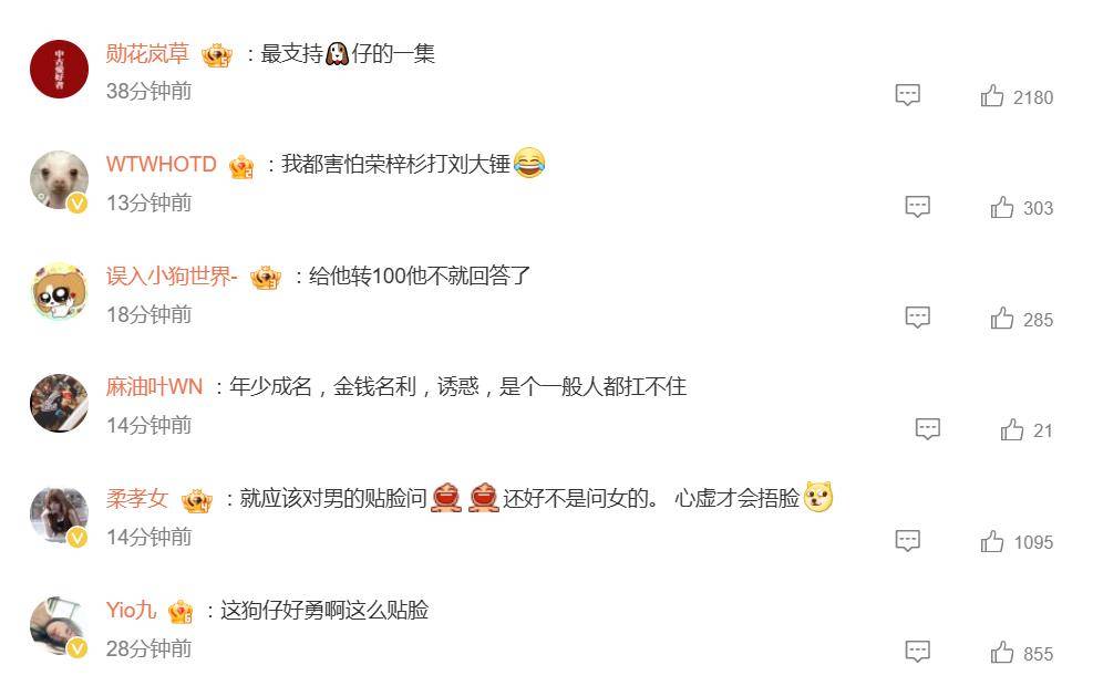镜头前,刘大锤的追问堪称“贴脸开大”:“李禹熹网上发的截图是不是真的?”“你们俩是不是真的谈过?”“荣梓杉李禹熹AA开房这件事你怎么看?”一连串尖锐问题抛出,而身处风暴中心的荣梓杉全程一言不发,只以捂脸、低头、快步离开作为回应。这组画面立刻被网友截图疯传,评论区更是炸锅:“最支持狗仔的一集!”“应该对男的贴脸问,还好不是问女的。”“心虚才会捂脸吧?”“我都害怕荣梓杉当场打刘大锤……”