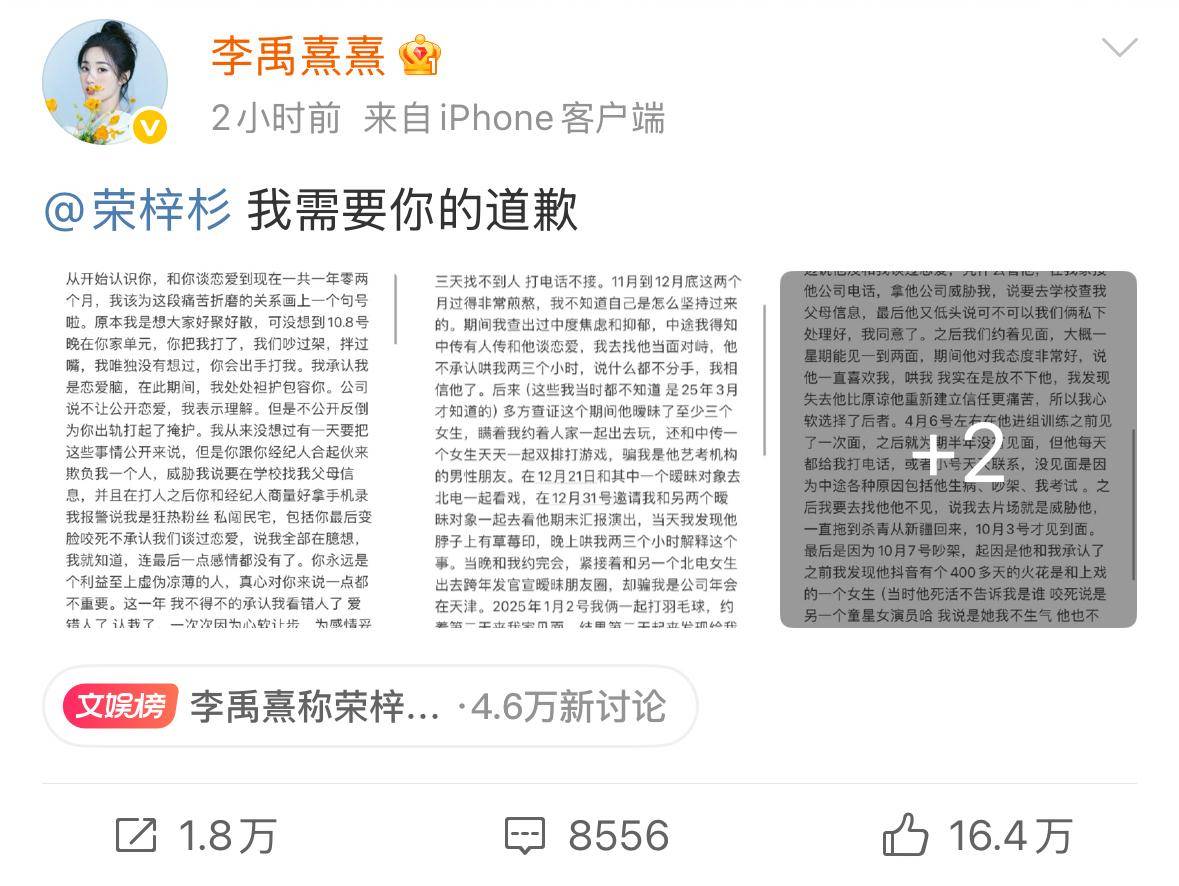 16日晚间,李禹熹再次发文,而且哈来了波大的,直接公开与荣梓杉的聊天记录,这下实锤二人曾谈过恋爱。