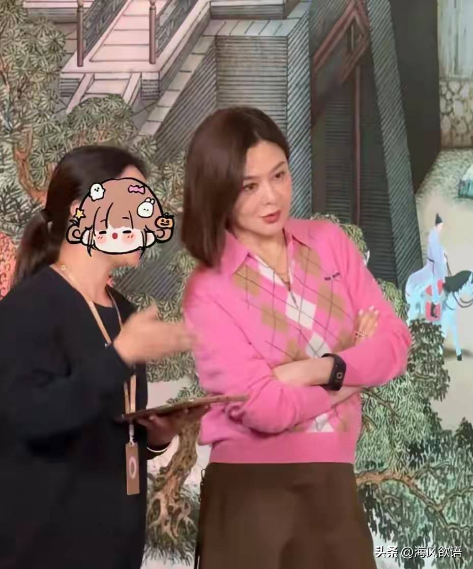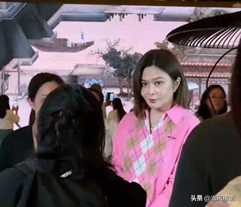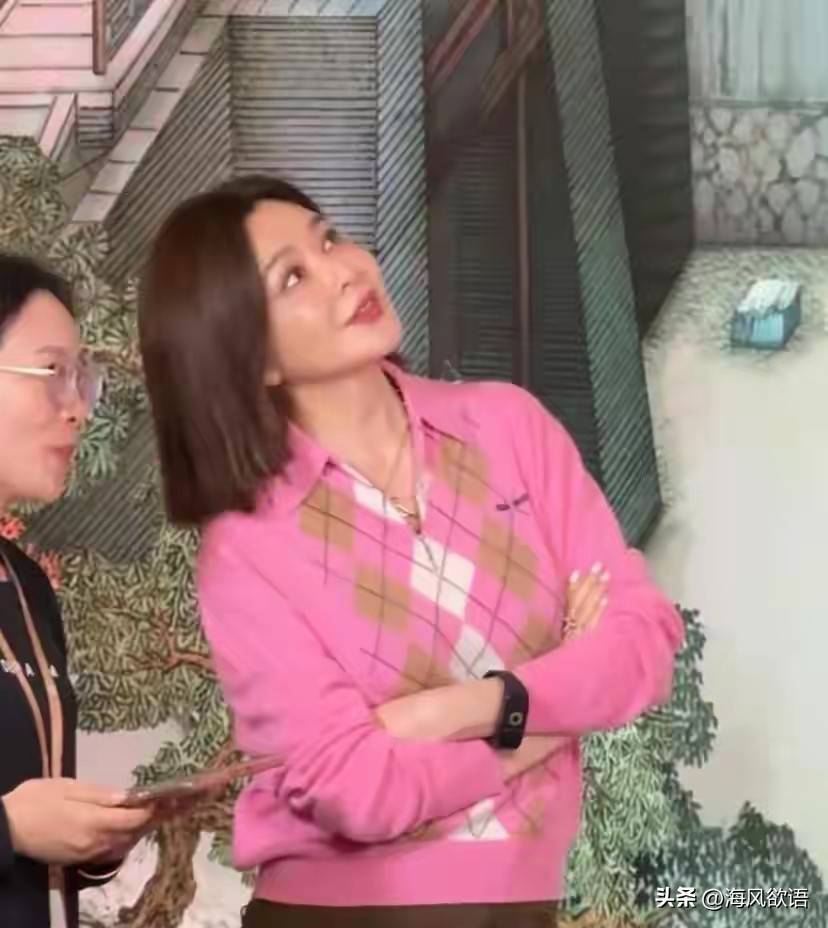 当天她穿的粉色毛衣特别衬肤色,衬得皮肤白皙透亮,上面还有小巧的印花点缀,不会显得单调,虽然身形看着比年轻时丰腴了些,但这种圆润感刚好撑起了毛衣的温柔质感,一点不臃肿,反而透着股雍容的劲儿。
