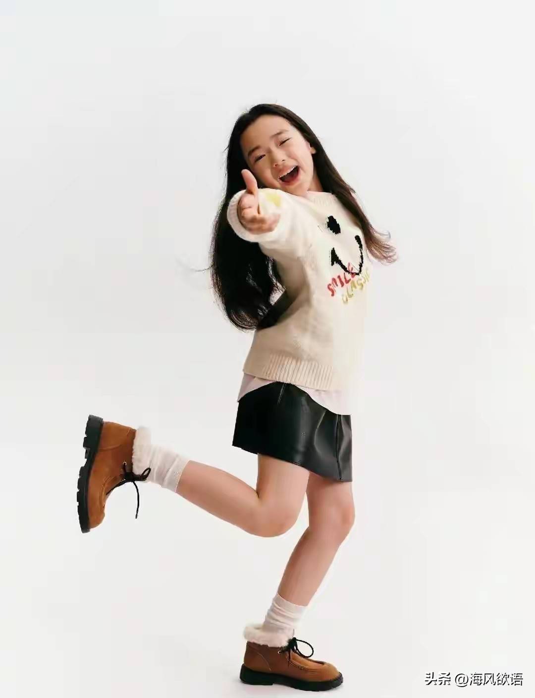 9岁的小酒窝完全长在颜值点上,圆嘟嘟的脸蛋上嵌着大眼睛,笑起来的酒窝和妈妈董璇如出一辙,高鼻梁又随了浓眉大眼的爸爸高云翔,五官大气又舒服,气质更是遗传了爸妈的优点,站在镜头前不刻意也自带灵气。