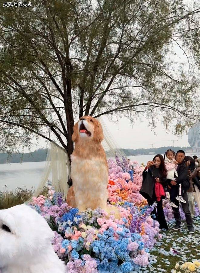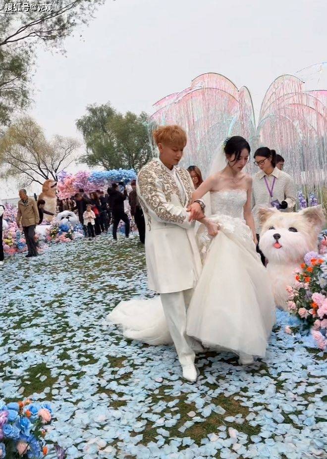 除了众星云集十分热闹之外,现场的布置也很是浪漫,彩色花朵堆成花墙,地上满是花瓣。周围还有很多的猫猫狗狗的玩偶,和黄子韬订婚时的布置有些相似,都是徐艺洋喜欢的宠物。据黄子韬透露,因为订婚是自己操办,所以婚礼的一应布置,都是徐艺洋一手准备的。