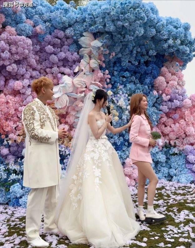 至于婚礼环节,和此前网传的大差不差,黄子韬为徐艺洋准备了500克拉的玻璃戒指,直接戴到了徐艺洋的手腕上;之后又是扔捧花又是扔西兰花,现场十分热闹。