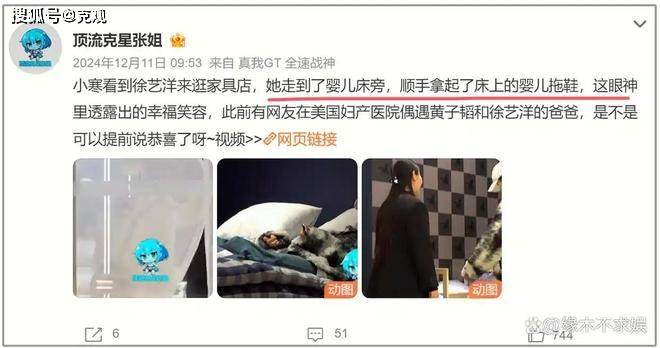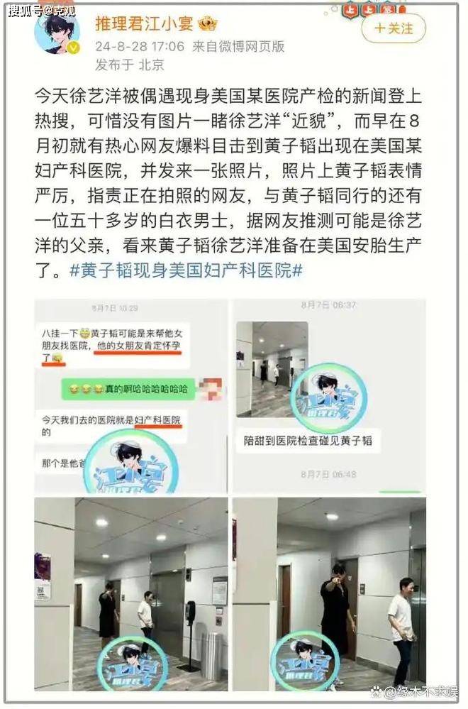 其实两人疑似有孩子并不是什么秘密。今年6月份,狗仔拍到徐艺洋妈妈抱着一名小婴儿现身地下车库。去年8月,黄子韬还陪同徐艺洋现身美国某医院产检。之后徐艺洋还被拍到现身家具店买婴儿床。