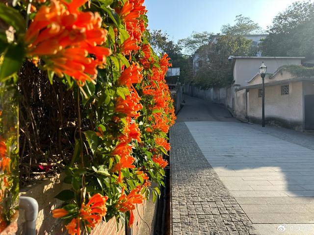 而另一张是路边的花,在阳光下特别显眼。谁能想到,演着严肃谍战剧的吴越,还会留意这些细碎的小美好,心思真的好细腻啊。