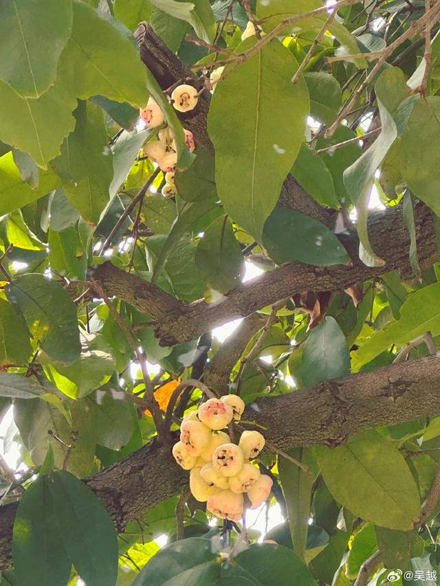 第8、9张是她随手拍的生活小美好:一张是树上挂着的未长熟的莲雾,粉白色的果子挂在枝头,透着新鲜劲儿。