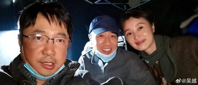 第5张照片里,是吴越和于和伟、郝平站在一起笑,三个人都是上戏毕业的,在片场碰到简直像 “同学聚会”。
