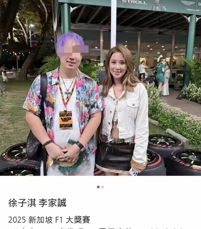 跟老公李家诚在一起时,她会穿搭符合老公审美,偏年轻化,很青春靓丽活泼的那种。比如说两个人一起去新加坡看F1,她穿搭超级年轻人。