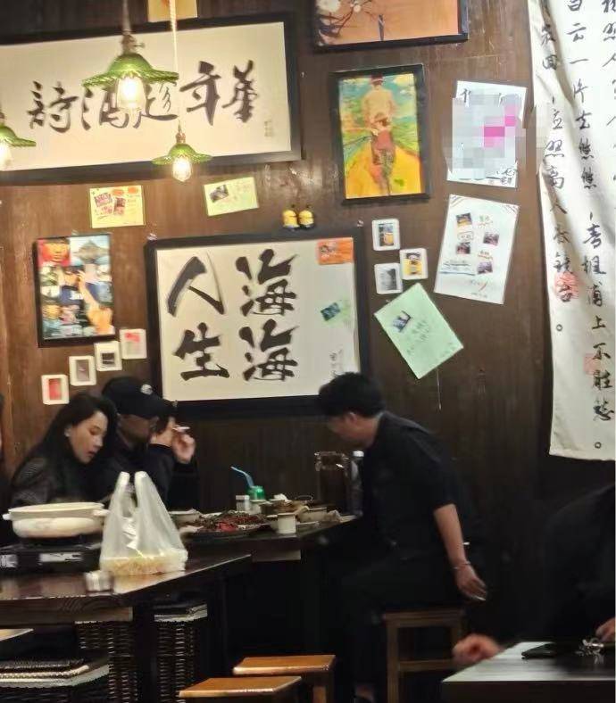 森林北贴汪峰很近,小鸟依人,汪峰像黑帮片里的老大一样,带着自己美丽的女人下馆子。