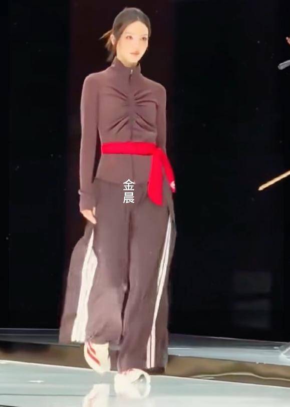 不过金晨的造型却很有细节,用红色的丝带把这个缺点给遮住了,只不过上半身还是暴露了缺点,有点驼背的感觉,拉低了整体气质。