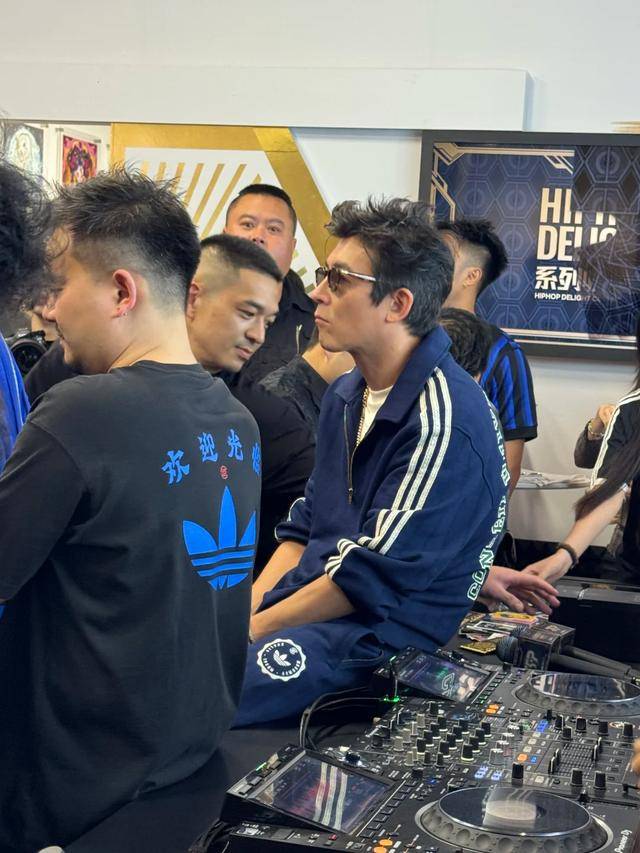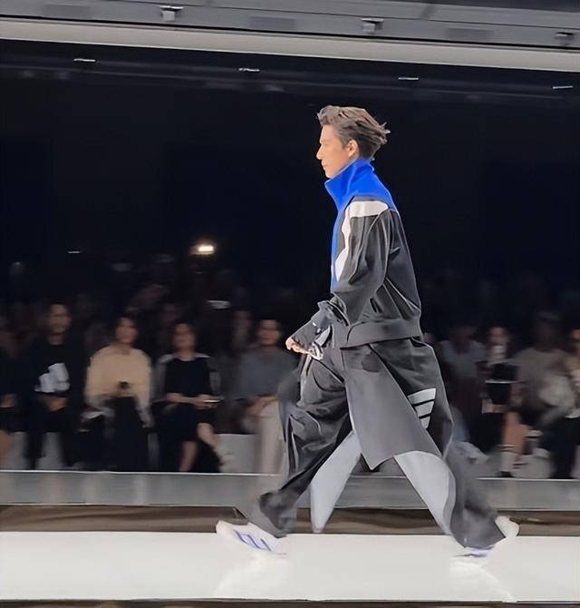 只见他穿着阿迪达斯的新款服饰,在台上气场全开,跟模特虽然没法比,但也挺帅的。