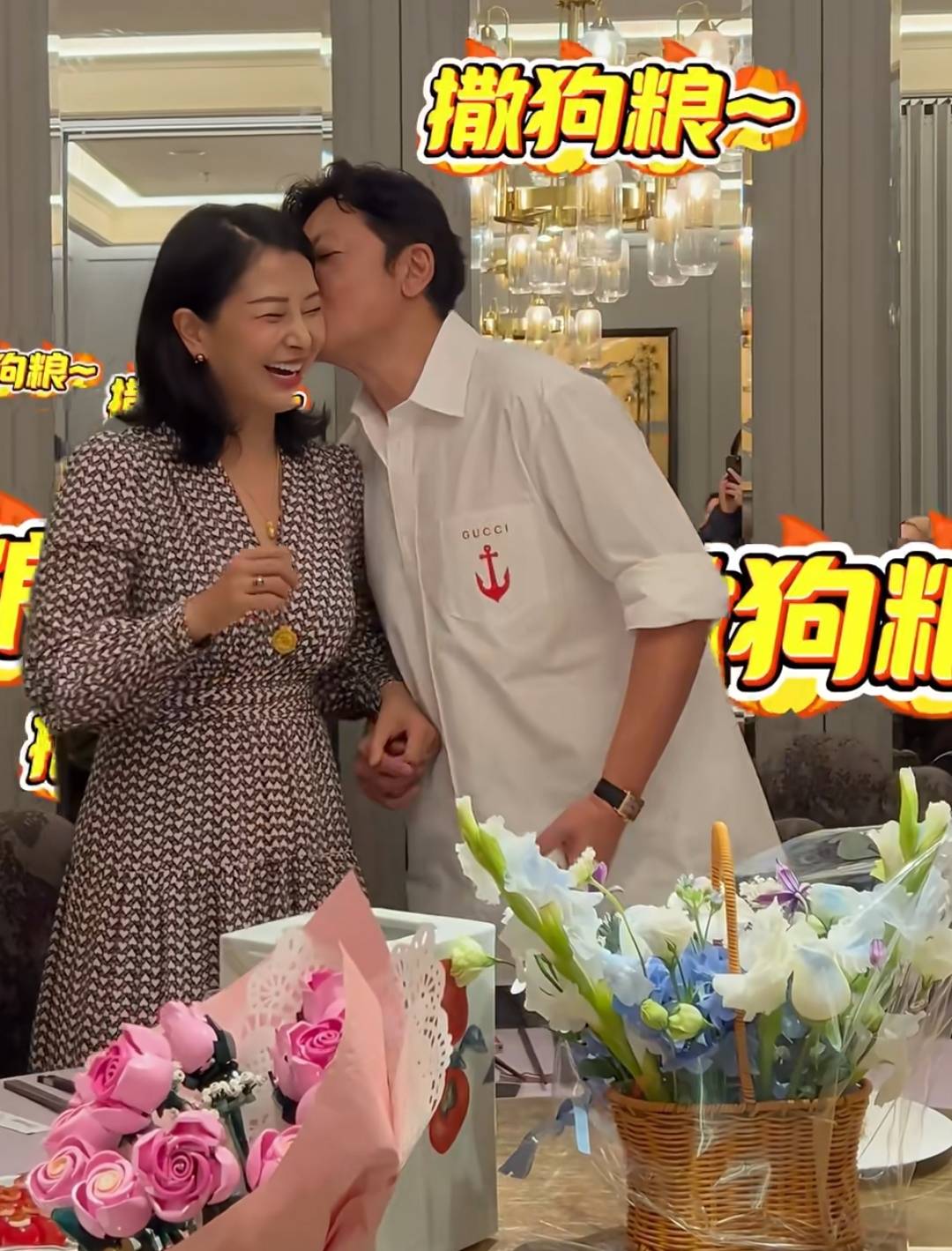 刘茜这边也是送了一篮子鲜花,不过有鲜花中还藏着小礼物,是刘茜提前备好的最新款耳机,孙思瀚给足老婆情绪价值,感动之余又紧抱刘茜,还亲了亲老婆的脸颊,结婚二十几载,两人在婚姻里还是很恩爱。