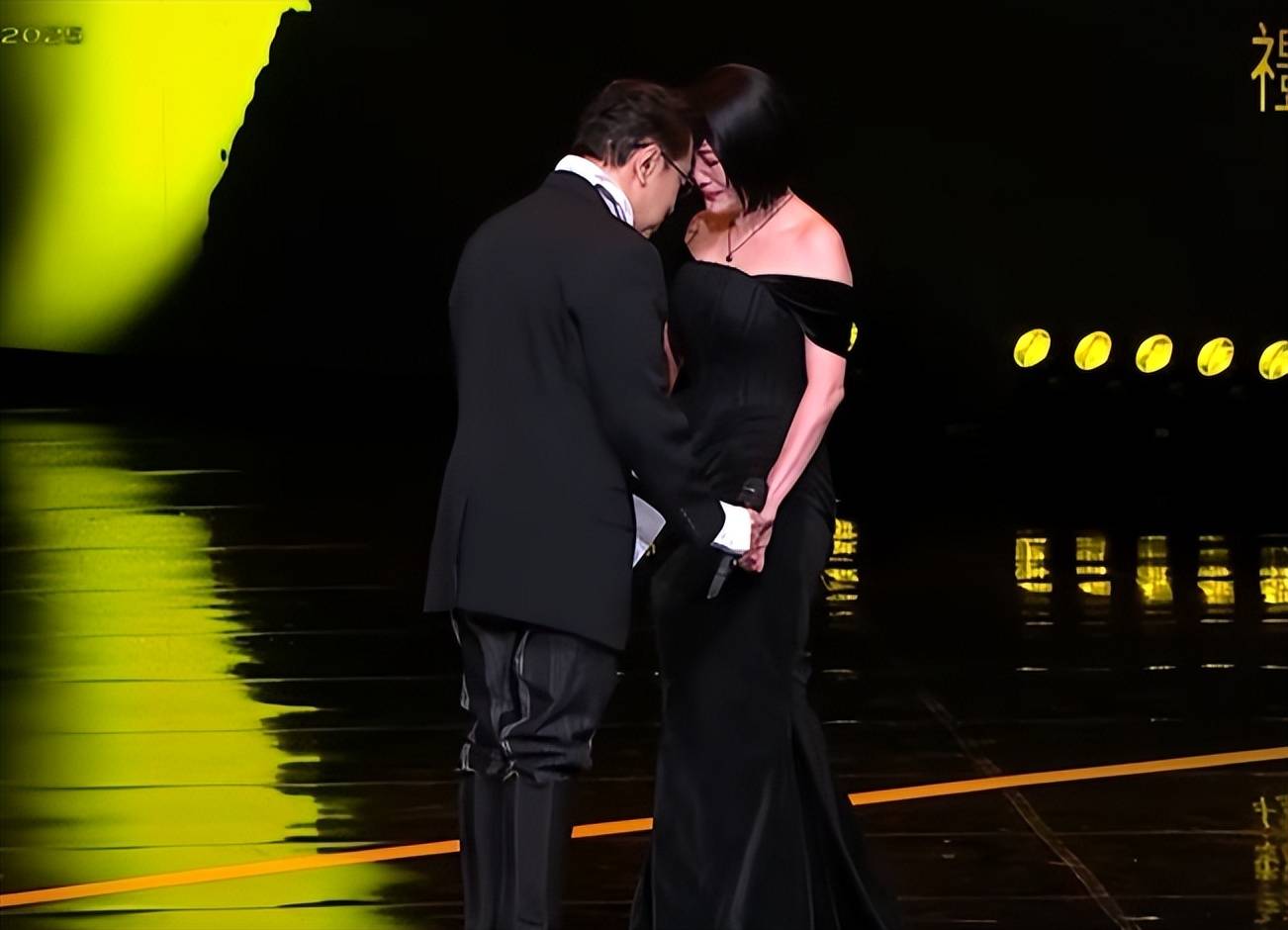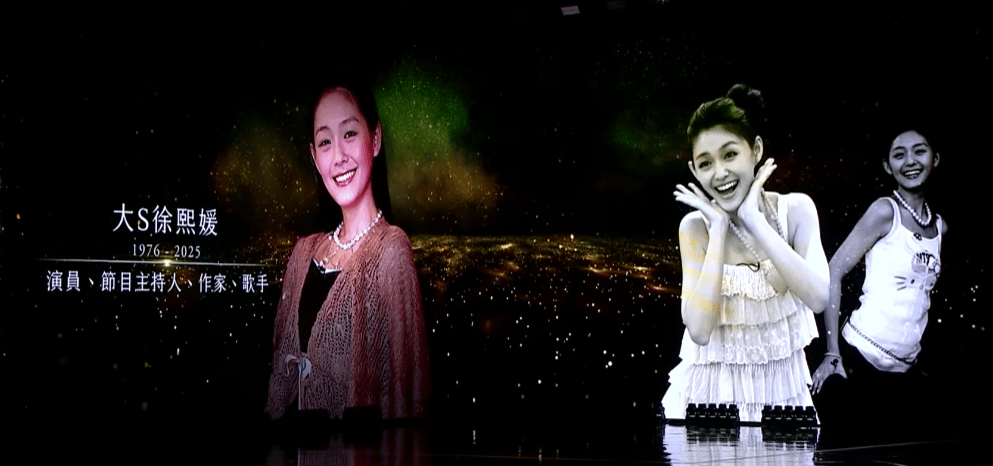 蔡康永率先在舞台上现身,说小S遭遇大S的失去,呼吁大家给她鼓励,随后小S一身黑色礼服现身颁奖礼,刚亮相就泪洒现场,等到走到舞台中央的时候,已经开始捂嘴了,之后和蔡康永头对头默哀。