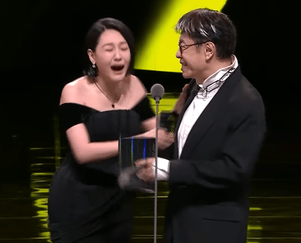 确认自己获奖的瞬间,小S完全失去表情管理,当场哭崩,大张着嘴嚎啕。