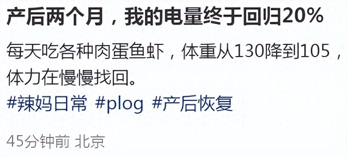 在配文中,水亦诗提到体力正在慢慢找回,身体“电量”终于回归到20%。虽然还未完全恢复,但她对目前的状况非常满意。