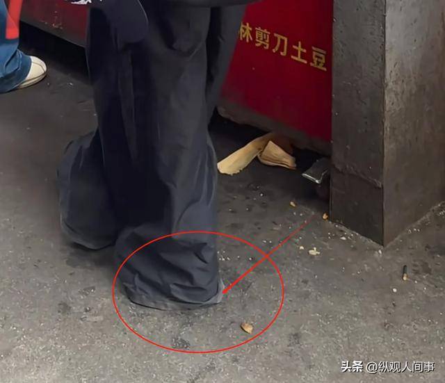 最离谱的是黑色裤子,裤脚长得拖在地上,走路时扫过满是灰尘的地面,裤脚边缘沾了不少泥点,网友看见之后直呼邋遢,可是他却像没看见一样。