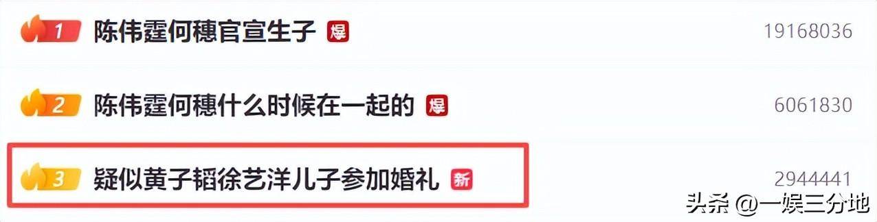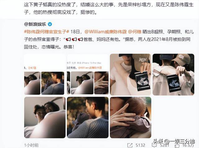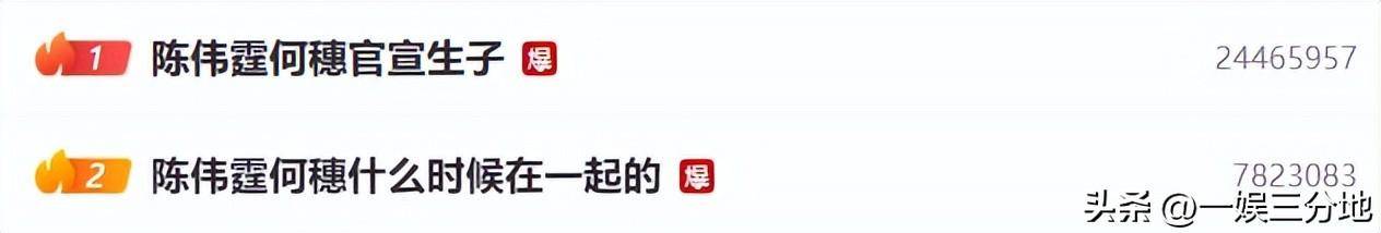 就在刚刚,陈伟霆和何穗突然官宣生子,消息一出,瞬间引爆了热搜!果然,不愧双方都是娱乐圈里响当当的人物,但凡他们俩的名气小一点,压根不会上热搜第一。因为今天的热搜榜每一个都很