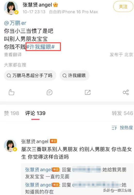 昨晚,张慧贤突然发文,爆料万鹏是“惯三”,经常不分场合的叫她男朋友宝宝。