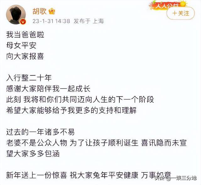 这几年,娱乐圈里只官宣孩子,不官宣恋情的人越来越多,胡歌也算一个。