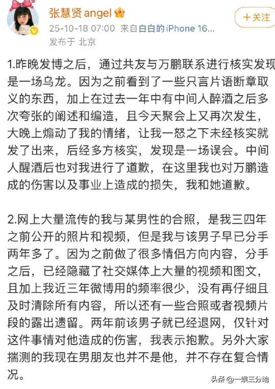 紧接着,张慧贤立马删除微博道歉,称这件事是一场乌龙。