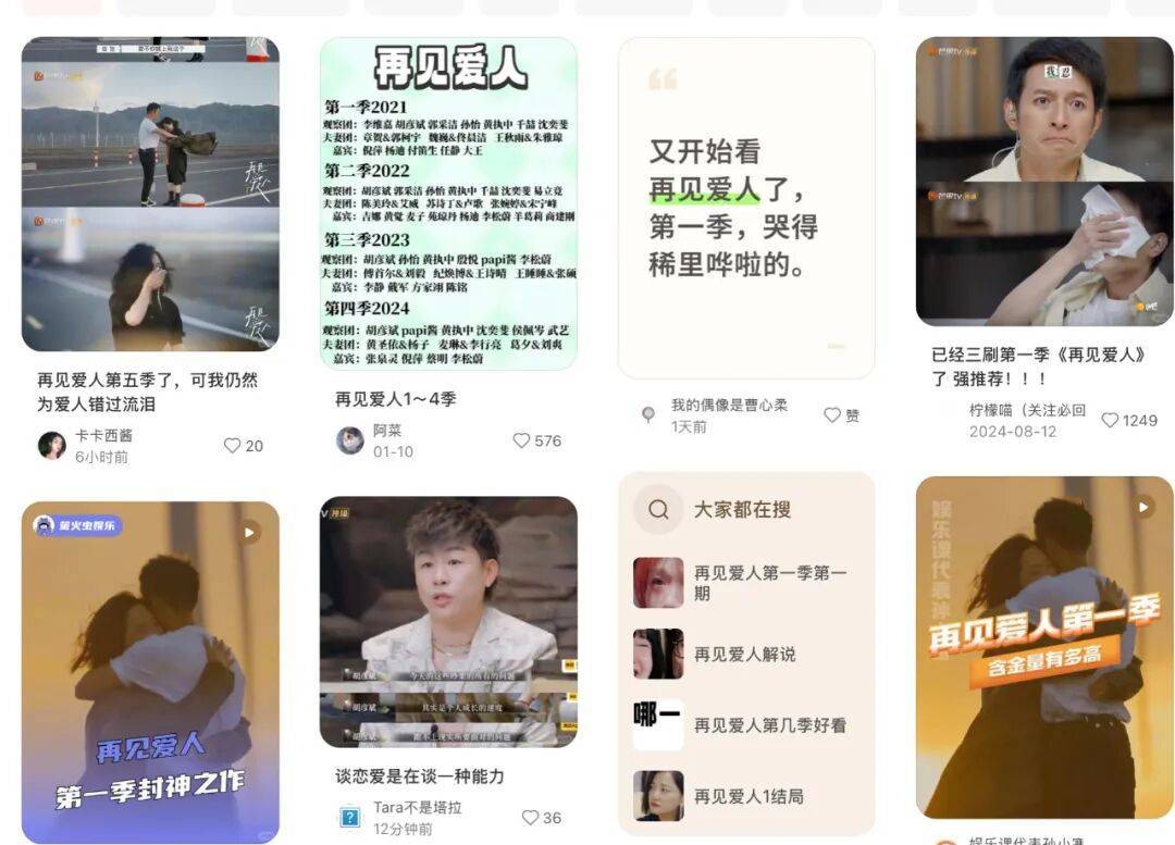 当下小红书、微博随处可见老粉追忆、安利《再见爱人1》的刺耳声音,多少映射出做了五季的《再见爱人》似乎遇到了一些瓶颈。