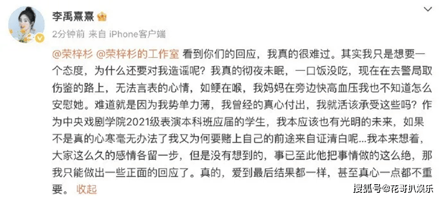 看得出来,荣梓杉工作室说瞎话是不爱打草稿啊,梦到哪句说哪句。而且绝口不提动手伤人一事。