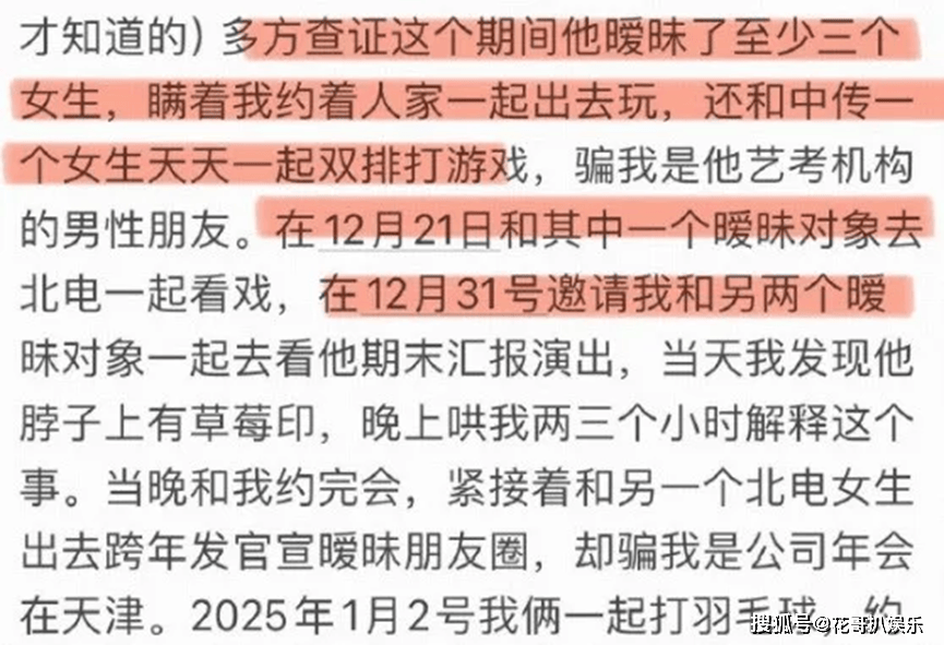 事情说到这还挺偶像剧感觉的,但是交往不到三个月,荣梓杉就突然变得忽冷忽热,长时间冷暴力李禹熹。李禹熹不知道男友为什么突然变成这样,找不到荣梓杉就从他身边的人找起,结果不找不知道,这么一找才发现他同时和三个女生搞暧昧。