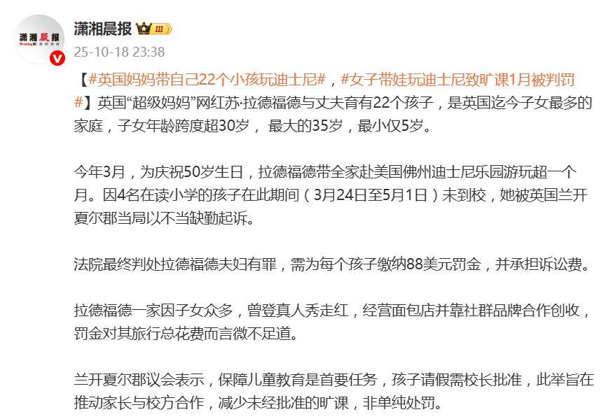 一边是法院和议会强调的“学业不容妥协”,另一边却是网红家庭“罚归罚,玩照玩”的现实。这微不足道的罚单,究竟是在维护教育尊严,还是变相默认了“财富特权”可以对规则一笑而过?