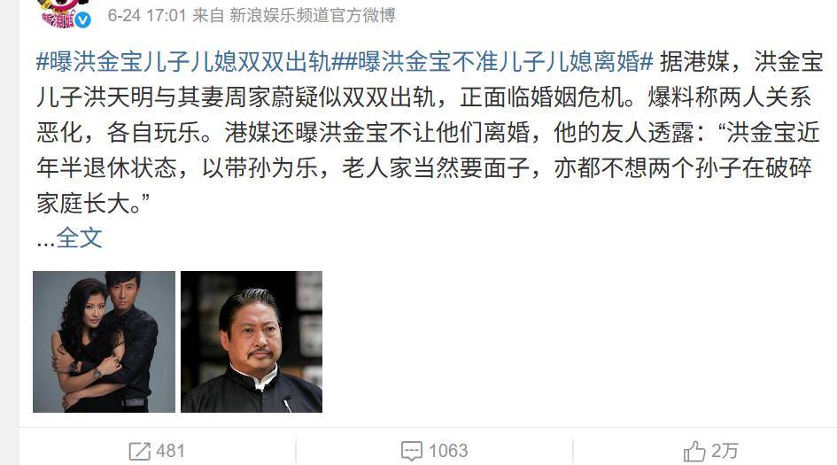 他这几年唯一的槽点还是在儿子的婚姻上,儿子洪天明的婚姻老是被传婚变,不过在他的强烈要求下,这段婚姻也是有惊无险的维持下去了。