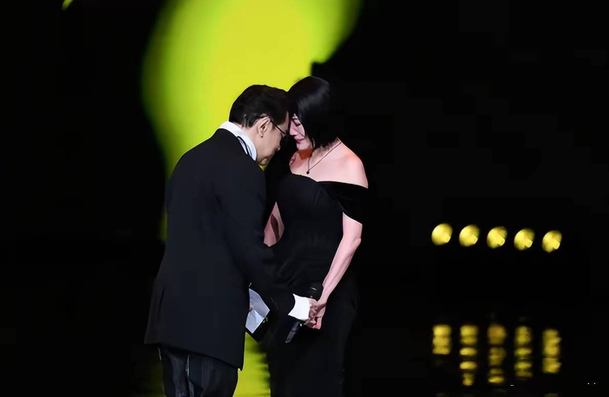 如此姗姗来迟,说明了她很悲伤,也说明了主办方给足了她尊重。蔡永康向前抵着她的额头、给她一个拥抱,安静的默哀,全场都泪目了。