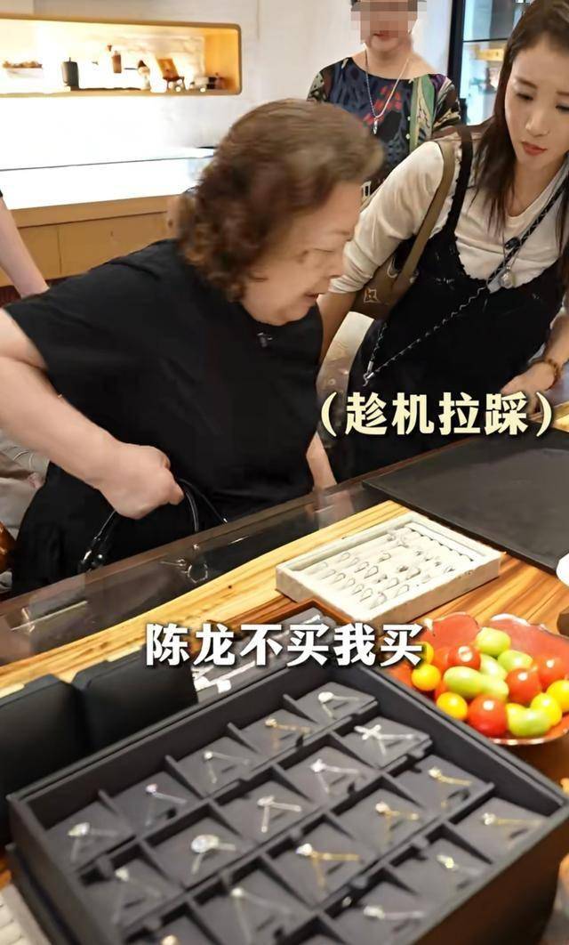 接下来,婆媳俩又拉扯了一番,她要买两只,但婆婆只同意买一只。明面上,她妥协了,婆婆最终选了一款排钻的,3500元。对于明星家庭来说,这个价格真的算便宜了。婆婆说,只要心意到就行了。