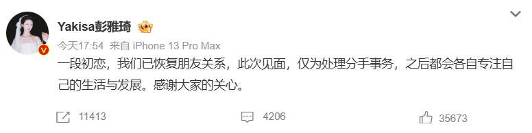 这一回应可谓是让网友们措手不及,原本以为是新恋情曝光,结果却是已经结束的感情。从被拍到疑似恋爱的画面到彭雅琦的回应,整个过程就像一场戏剧性的“风暴”,来得快去得也快。