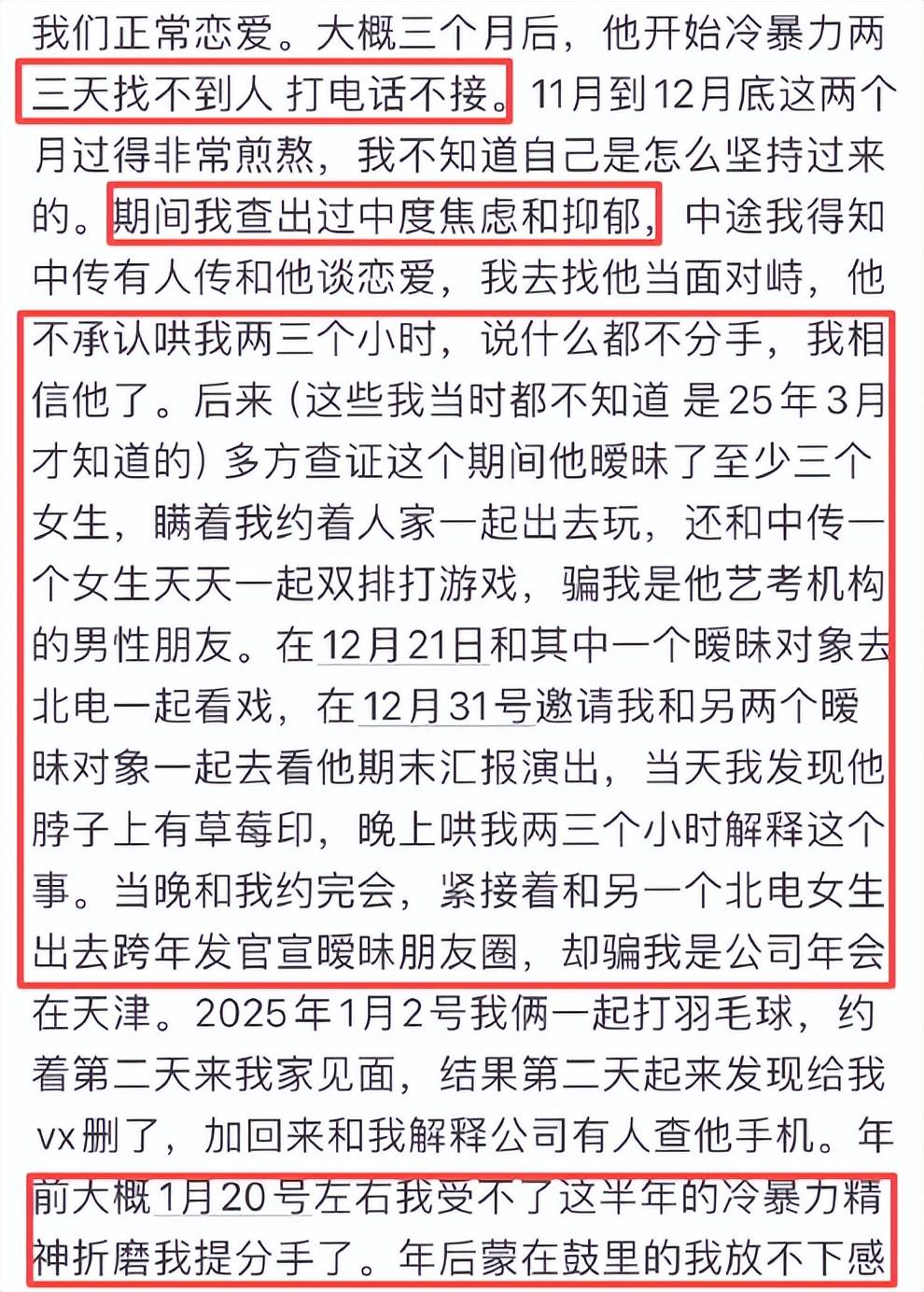 然而,李禹熹也不是全然相信男方,之后又多番调查,才发现这期间,荣梓杉在与她恋爱的同时,还与另外三个女生暧昧。