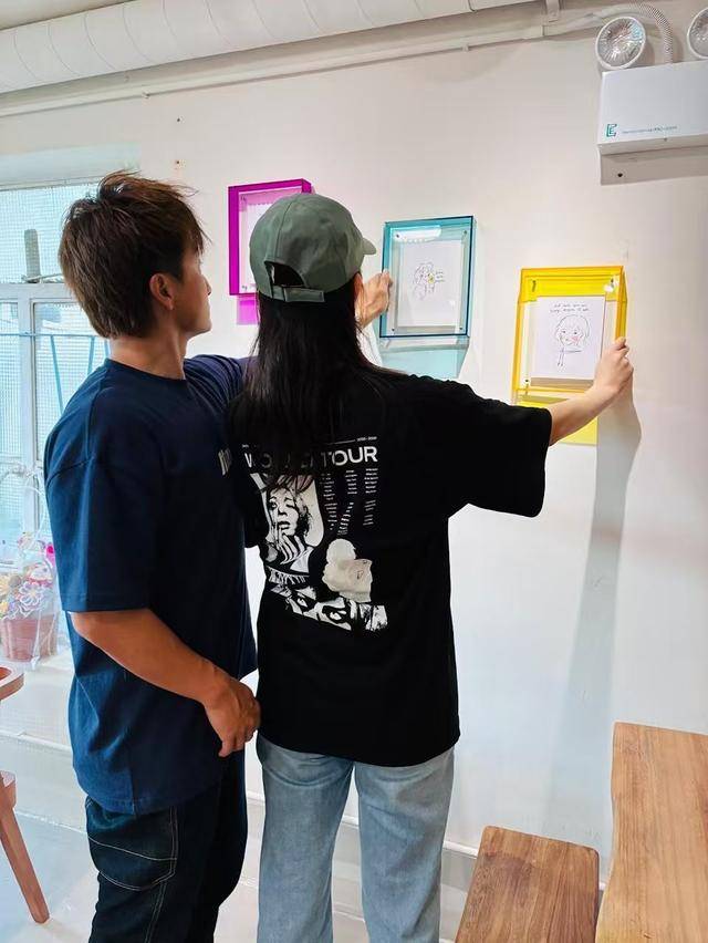 从叶萱分享出的动态中,我们可以看到叶萱将这个迷你画展地点选择在她非常喜欢的一家咖啡店中。