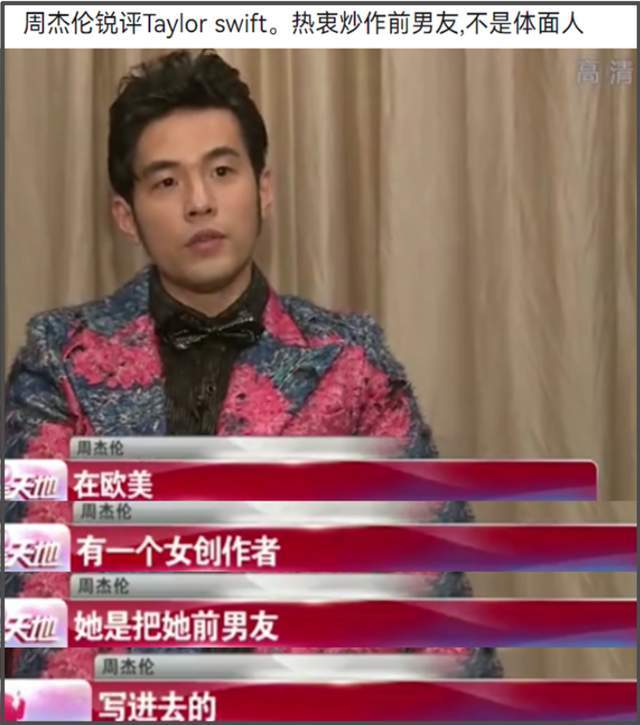 周杰伦可是公开嘲讽过霉霉的,他在一次采访中吐槽霉霉喜欢以前任为灵感写歌,全然忘记自己做过同样的事,更别提他和昆凌结婚10年了,还是放不下前任侯佩岑。
