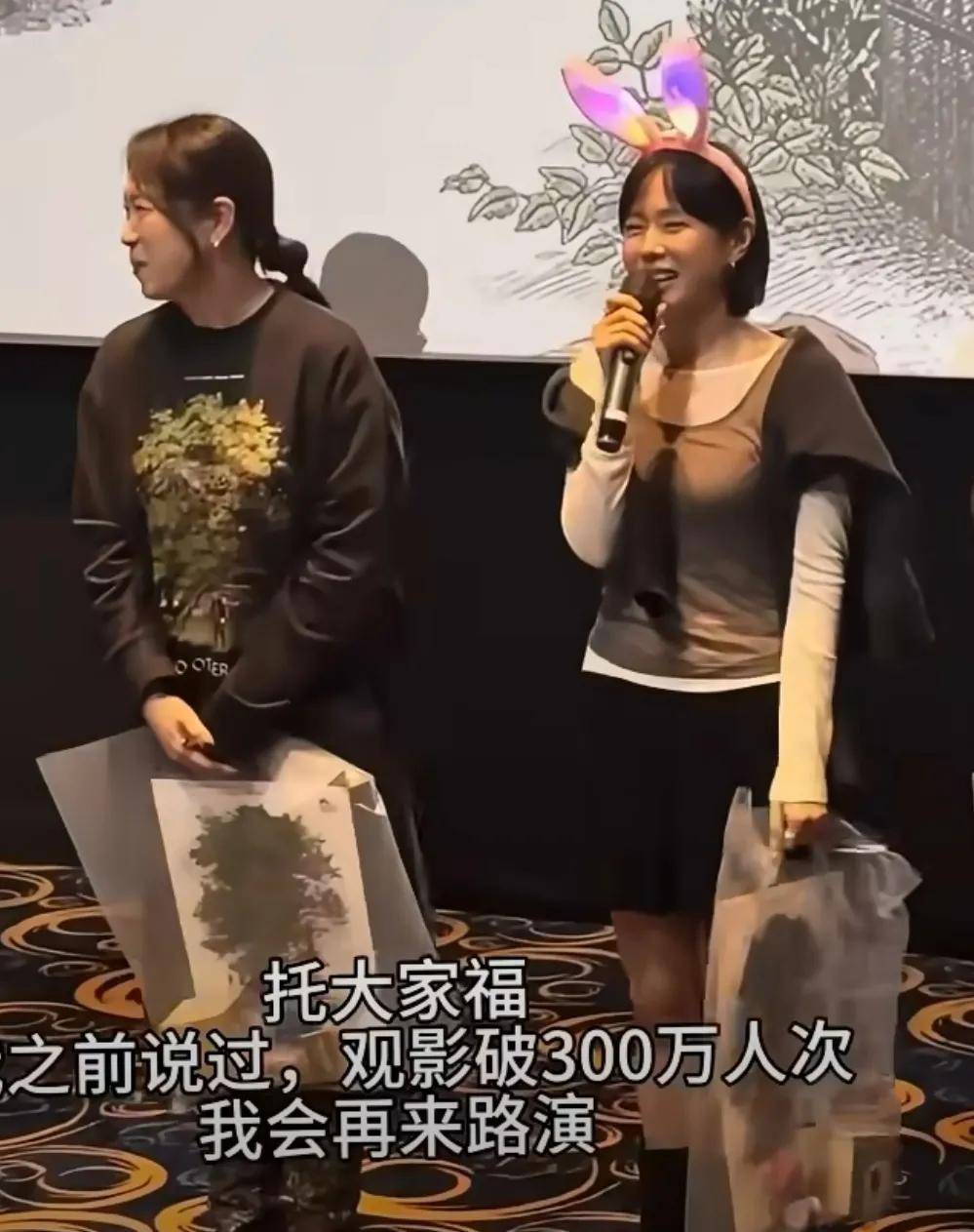 只见孙艺珍顶着为了新戏剪的短发,跑着《无可奈何》路演,现场开催观众买票,表示自己曾经放话观影人次破300万就路演,结果还差一点点……