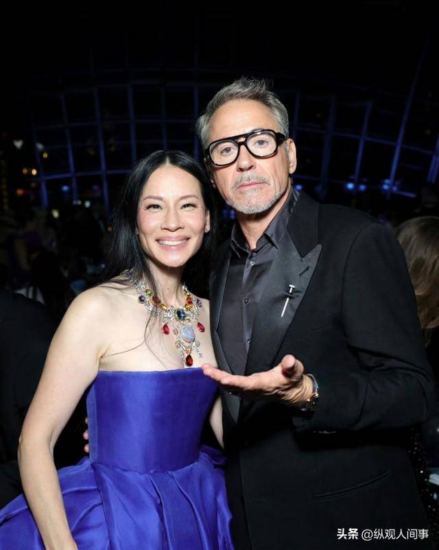 在现场还有唐尼和刘玉玲的合照,刘玉玲笑的牙龈都快漏出来了,身穿紫色的抹胸裙,脖子上还有硕大的钻石项链。