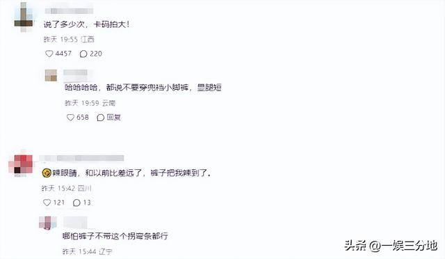 紧身裤子再加上内八,还有那双目测十厘米的靴子,让观众都看不下去了,直呼“辣眼睛”。