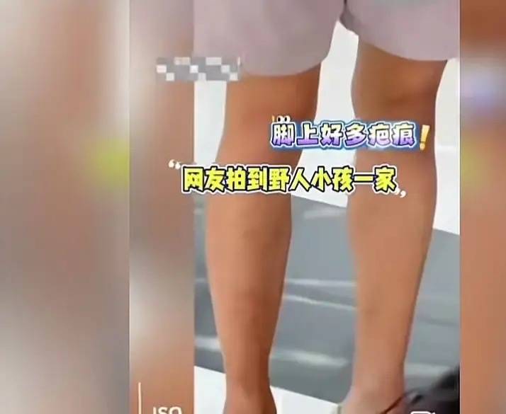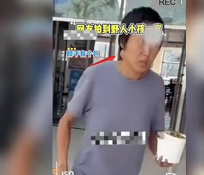 在服务区买吃的的时候,有网友拍到了野人小孩的妈妈,她精神状态有点不正常,脖子上有一个大包鼓起来了。