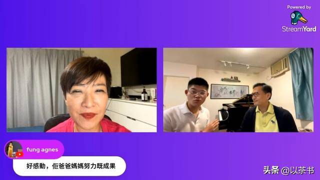 2024年10月父子俩上刘雅丽直播,陈驾桦弹琴唱歌,高大帅气,语速快但清晰,观众直呼“学霸”。