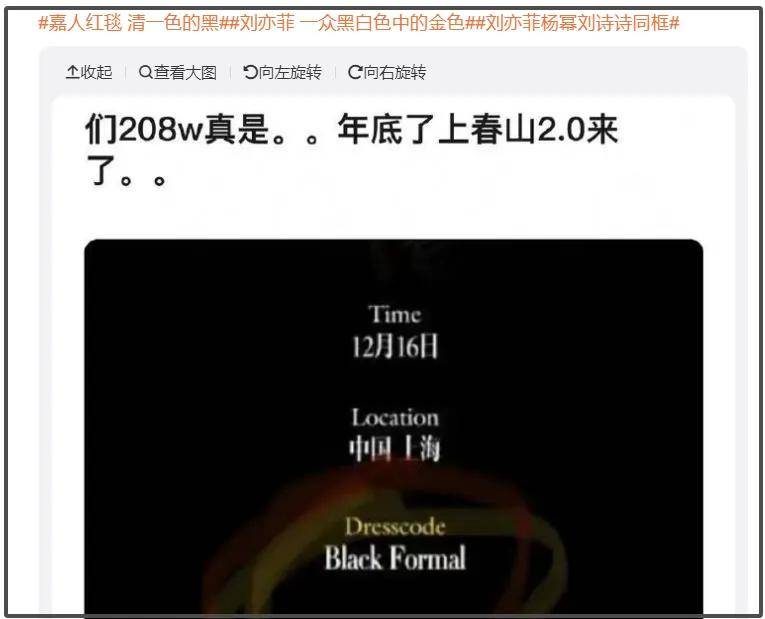 譬如集齐杨幂、刘亦菲、刘诗诗、倪妮等一众85花的嘉人红毯,主题是飞行员,着装要求是黑色正装,只有杨幂认认真真听进去了。