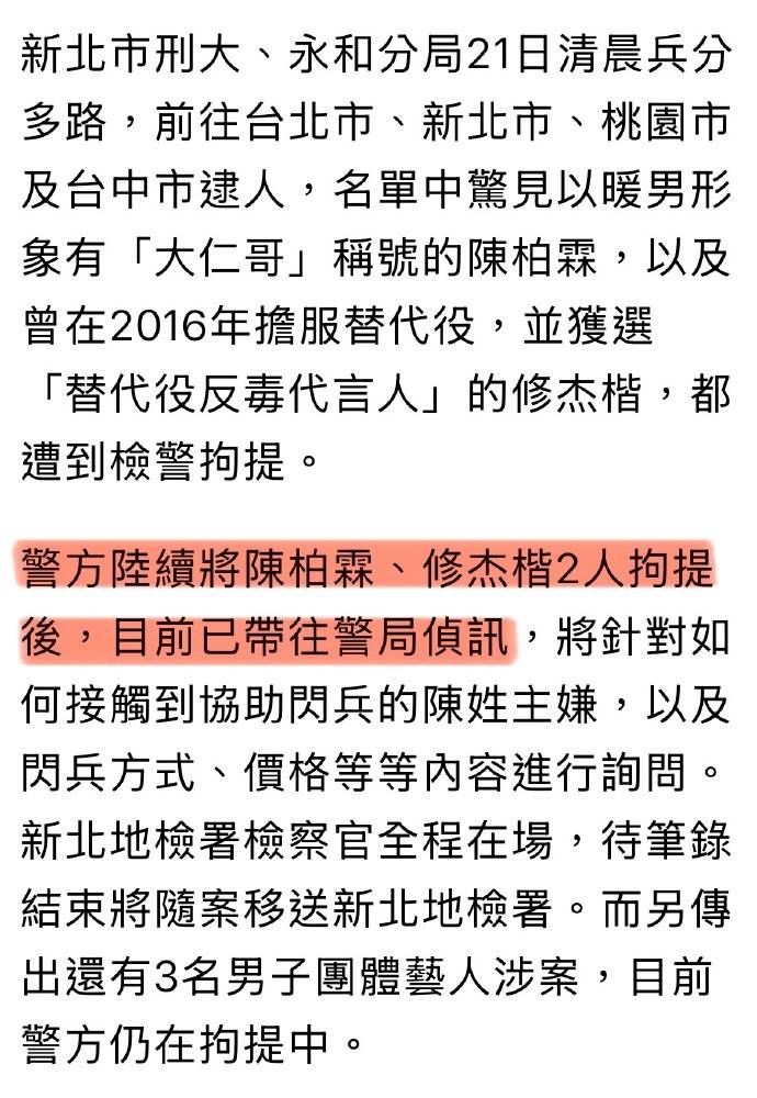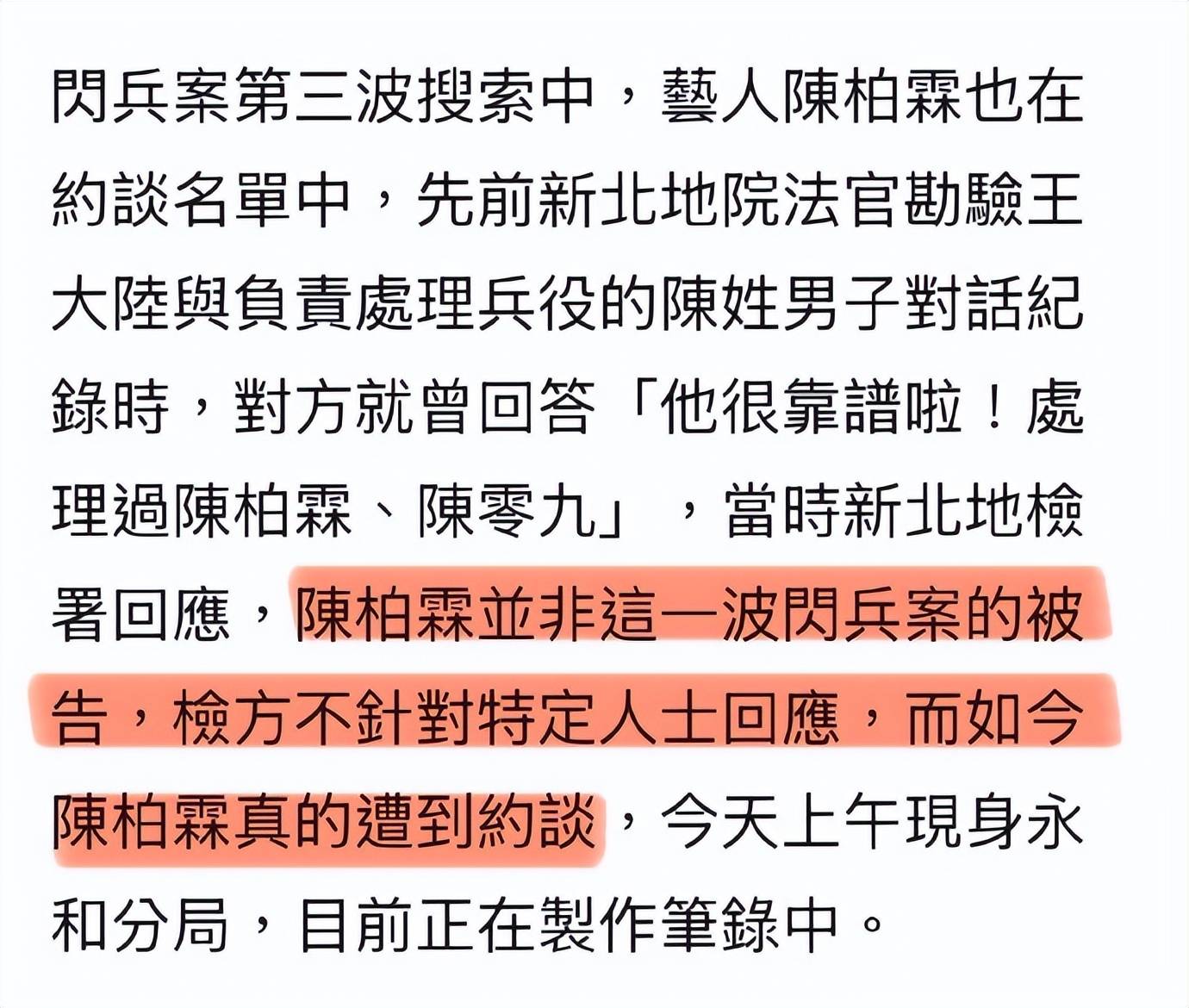 这一切都指向以一名陈姓主嫌为首的“闪兵集团”。该团伙被指控通过伪造病历等非法手段,协助艺人逃避兵役义务。陈柏霖被卷入风暴中心,原因在于检方发现陈姓主嫌在通讯中曾提及“处理过陈柏霖”;而修杰楷虽在2016年以“家庭因素”服替代役,但其手续的合法性如今也遭到检方质疑,调查其是否涉及非法手段。此次侦讯内容主要围绕他们如何接触中介、逃役的具体方式以及交易金额等关键问题。