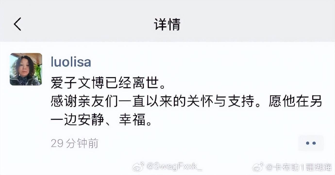 热搜“#孩子王去世#”背后,是一场猝不及防的生死离别。10月20日,28岁的说唱歌手“孩子王”(本名文博)在美国某高速公路遭遇严重车祸,车辆尾部被撞至变形溃烂,经送医抢救无效不幸离世,年轻的生命永远定格在了28岁。其母亲通过朋友圈发布讣告,沉痛确认:“爱子文博已离世,愿他在另一边安静、幸福。”字里行间是一位母亲无尽的哀思。